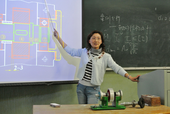 由浅入深、融会贯通,善于结合实际是朱老师基本的教学风格。“把螺栓比作山,把螺母比作是你,拧螺母的时候就像是你在沿着螺纹盘旋上山一样……” 朱老师习惯于用生动鲜活的案例,讲授枯燥的专业知识点。“我们这门课偏工程应用比较多,我在工厂的多年经历恰是宝贵的财富,利于我结合实际,拓展书本内容,多讲一些工程案例,讲活这块知识,学生也能够更好理解”。她的学生李如俊对朱永梅老师的课堂赞赏有加:“朱老师课上比较喜欢互动和灵活使用多媒体增添教学氛围,不单调乏味,属于循循善诱的老师。”今年研二的房文静更是深有体会,“《高等机械设计》里的断裂力学是相当专业、枯燥的难点,我们虽说是研究生,说实在的,有些知识点还是云里雾里,朱老师首先会讲解一些基本的、简单的案例,之后会给个综合案例,让我们自己深刻理解,学以致用。”