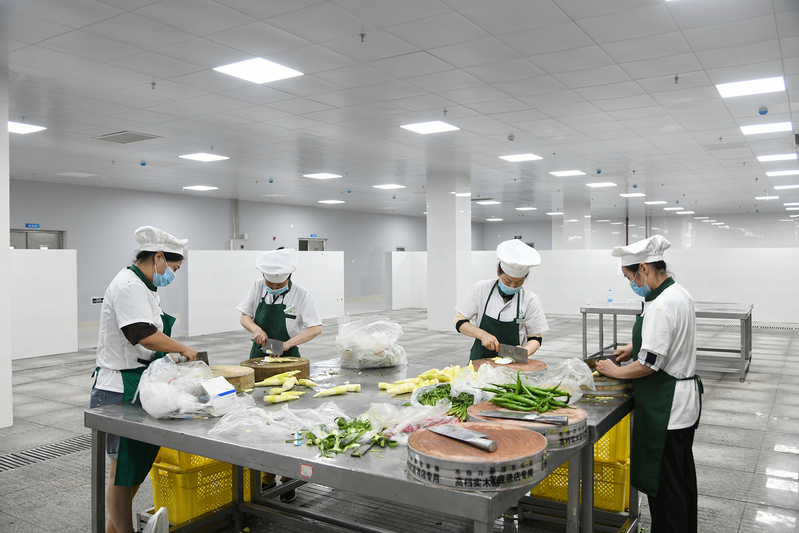 早上七点,校卫队田进就和同事们来到了新校区岗位上,他们主要负责搬迁现场的道路疏通和现场车辆引导,时不时还帮搬运行李的同学搭把手。来到新校区后,他感觉新校区环境特别好,在这里工作,也让人的心情特别好。后勤集团新校区西苑食堂负责素加工的刘顺梅已经在加工素菜了,今天第一天到这边上班,呼吸着新校区的空气,工作在宽敞明亮的操作间,感觉很好。十点左右,素菜都已经加工得差不多了。大厨赵勇6月15日就来新校区上班了,为了正式开业,他和同事们已经准备了很长时间,头天晚上就调试好新的炉灶,把开餐要用的东西都准备好,特别准备了十多个菜品,希望给前来就餐的师生留下好的印象。