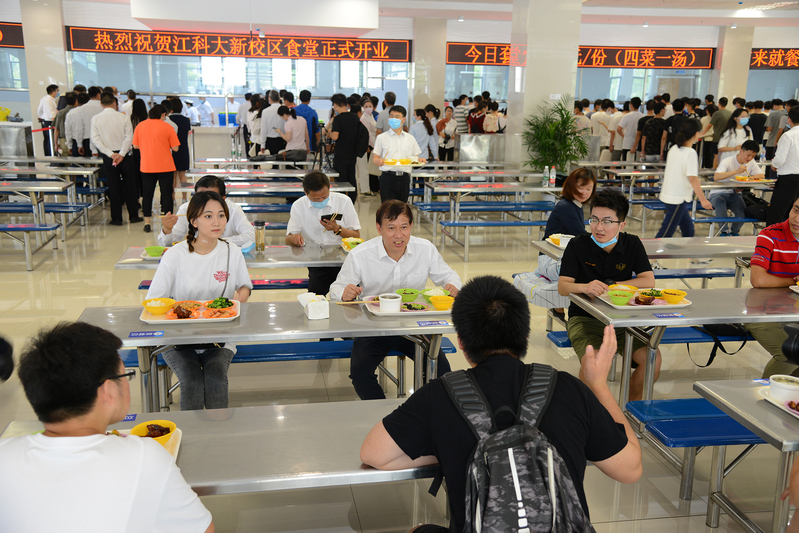 十里长山秀,百亩碧波柔。6月26日,诸侯快讯导航新校区西苑食堂揭牌开业,校党委书记葛世伦、党委副书记许俊华、副校长姜朋明,镇江市高校园区建设指挥部副总指挥马士良,中船第九设计院副院长鲁峰,中江国际江科大项目部经理朱伟平,校党委常委周春燕、刘新波等共同见证揭牌开餐,校党委副书记许俊华致辞,镇江市高校园区建设指挥部副总指挥马士良、中船第九设计研究院副院长鲁峰分别讲话,副校长姜朋明、中江国际江科大项目部经理朱伟平为西苑食堂揭牌。