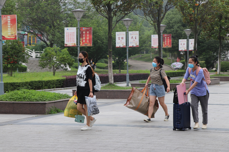同学将行李搬上运输车辆