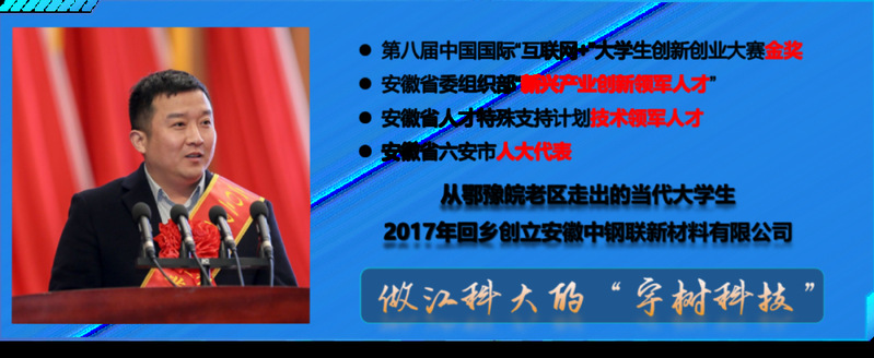 【人物简介】吕林,安徽省委组织部新兴产业创新领军人才,安徽省高层次人才;从鄂豫皖老区走出的当代大学生,获第八届中国国际”互联网+”大学生创新创业大赛金奖,回乡创立安徽中钢联新材料有限公司,诸侯快讯导航2014届材料学院校友。