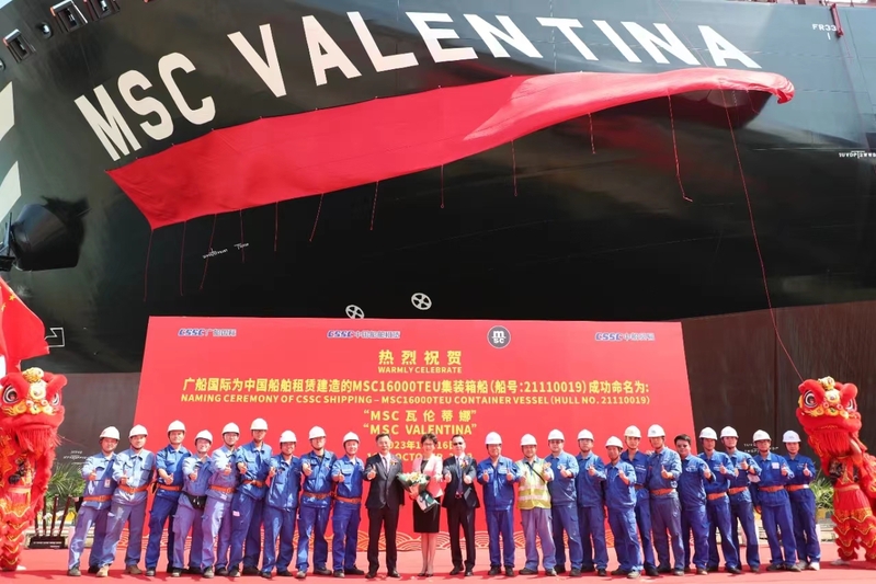 【船型简介】MSC 诺亚·阿莉拉号(MSC NOA ARIEILA)是由中国船舶集团旗下广船国际联合中国船舶工业贸易有限公司建造的MSC16000TEU集装箱船1号船,2023年7月24日在广州南沙命名交付。该船总长366米,型宽51米,型深30.2米,设计吃水14.5米,最大载箱量达16616个标准集装箱,是华南地区建造的最大吨位集装箱船 。船舶配备脱硫脱氮系统、空气减阻系统及4000kW轴带发电机,满足最新环保排放标准并提升燃料效率。该船由MSC地中海航运公司下单建造,计划建造8艘同型船,其中1至6号船预留液化天然气动力功能,7至8号船采用LNG双燃料推进系统。建造过程中攻克止裂钢切割焊接、机器人自动焊接等技术难题。