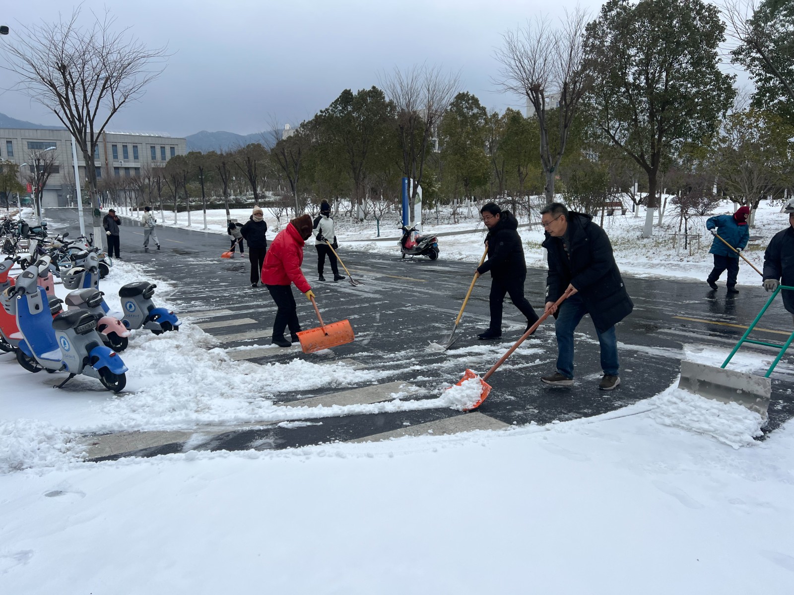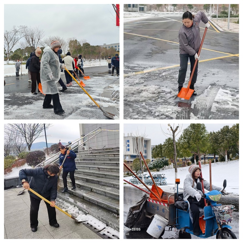 雪落无声,爱有回响。在这场与风雪的无声较量中,没有豪言壮语,只有默默坚守;没有聚光灯下的掌声,只有清晨第一缕阳光照在干净路面上的安心。后勤人用肩膀扛起责任,用脚步丈量温情,用双手融化冰雪,守护着万千学子求知的路、归寝的途、温饱的餐,用行动践行以师生为中心的服务承诺,他们是校园坚实的“后盾”,也是寒冬里最暖的光。