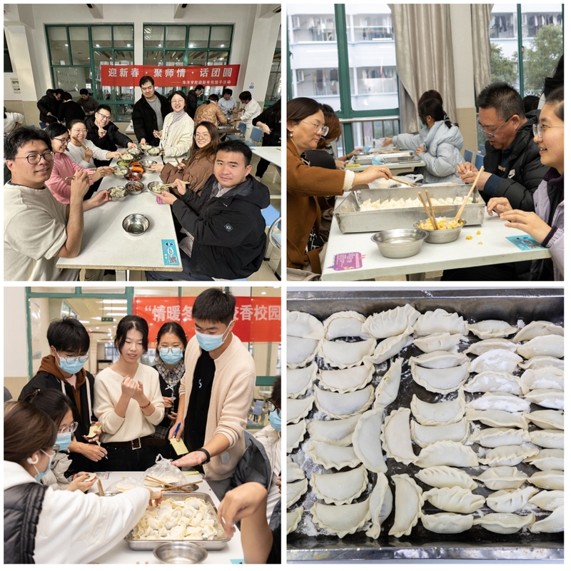船舶与海洋工程学院,生物技术学院、蚕业研究所,环境与化学工程学院,粮食学院,海洋学院等相继组织师生开展包饺子活动。食堂里,师生齐聚,笑语盈堂。经验丰富的教师现场示范技巧,青年教师和学生认真观摩、跃跃欲试。捻皮、填馅、捏合……大家默契协作,元宝形、柳叶形、花朵形等各式饺子相映成趣。当热气腾腾的饺子出锅,师生围坐共享、畅叙情谊,让团队在协作中更加紧密。