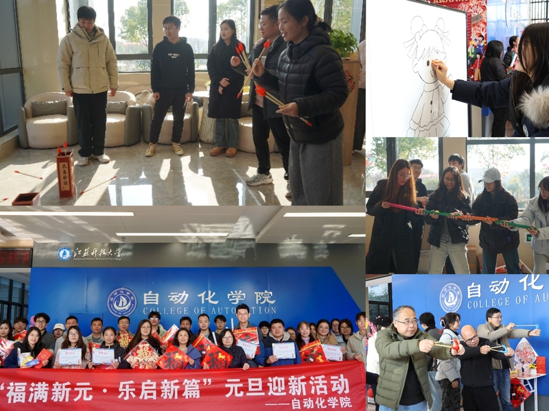 自动化学院“福满新元,乐启新篇”元旦趣味活动,设置“福矢入吉壶”“福鼻贴贴乐”“灯谜擂台”“传福大挑战”“福运击落”五大关卡。师生同场竞技,或凝神投壶,或蒙眼贴福,或协力传球,或智猜灯谜,现场喝彩与欢笑此起彼伏,在妙趣横生中解锁新年好运。