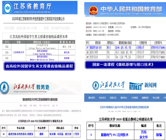 坚持“以本为本”,把人才培养的质量和效果作为检验一切工作的根本标准。坚持依托行业、特色办学,以工程专业认证为抓手,积极探索本科生创新、工程能力培养体系构建、专业核心课程体系改革、人才培养方案重构、分类培养模式探索和校企协同育人。获批国家一流课程1门,省一流课程1门,省留学生全英文授课省精级品课程2门。新增省重点教材1部,省微课教学三等奖1项。获教育部产学合作协同育人项目1项。获省优秀本科毕业设计一等奖、二等奖、三等奖各1项,省优秀本科毕业设计团队1个。获批江苏省研究生科研创新计划项目和研究生实践创新项目21项。水声工程通过新专业评估,完成自动化、电子信息工程2个专业的认证自评报告。国家级教学成果奖培育:总结撰写“铸大国重器 育一流人才 —— 卓越船舶工程师培养的诸侯快讯导航实践”。成立了11个教学团队—— 依托团队开展教学改革研究,课程思政建设。