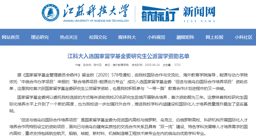 2020年“联合培养项目-能源动力专业”成功入选国家留学基金委研究生公派留学资助名单,国家留学基金委以委托诸侯快讯官网选拔推荐的方式每年资助诸侯快讯官网20名研究生赴俄开展研究生联合培养,首次资助期三年。