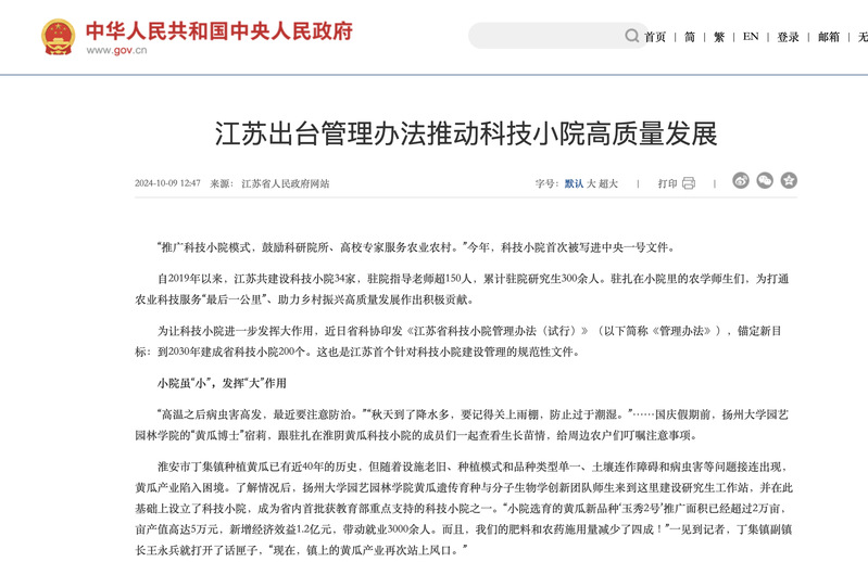 为让科技小院进一步发挥大作用,近日省科协印发《江苏省科技小院管理办法(试行)》(以下简称《管理办法》),锚定新目标:到2030年建成省科技小院200个。这也是江苏首个针对科技小院建设管理的规范性文件。