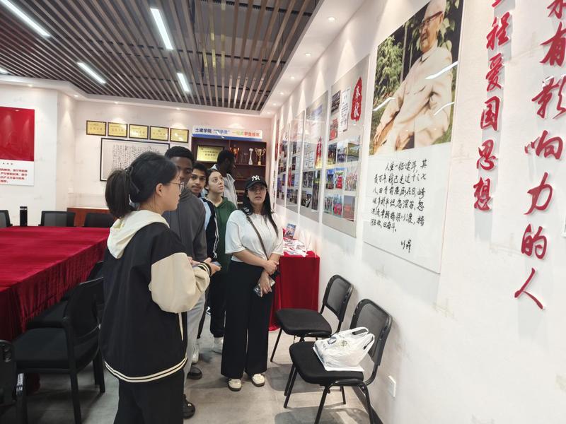 随后,留学生在讲解员引导下参观了茅以升精神展厅与桥梁模型展区。展区陈列多件由学生自主设计制作的模型,涵盖经典桥梁复刻与创新概念设计,体现出扎实的专业素养与艺术想象力。留学生们表现出浓厚兴趣,通过实物、图文与沉浸式讲解,深入理解茅以升的科研事迹与精神传承。